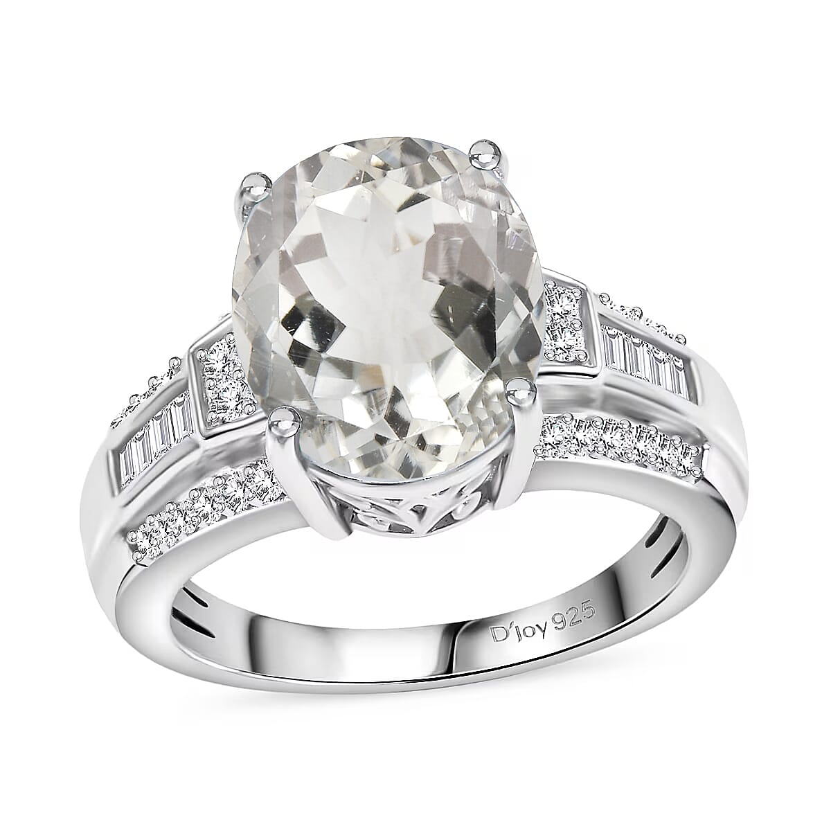 D'Joy White Kunzite , White Zircon Main Stone With Side Stone Ring in Rhodium OverSterling Silver , Silver Wt. 5.4 g 4.72 ctw