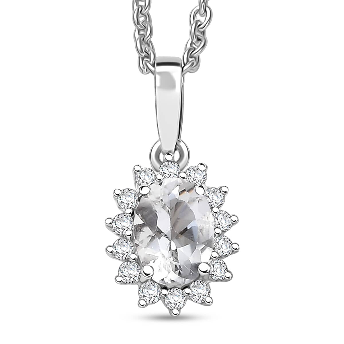 D'Joy White Topaz and White Zircon 0.90 ctw Pendant Necklace in Rhodium Over Sterling Silver 20 Inches