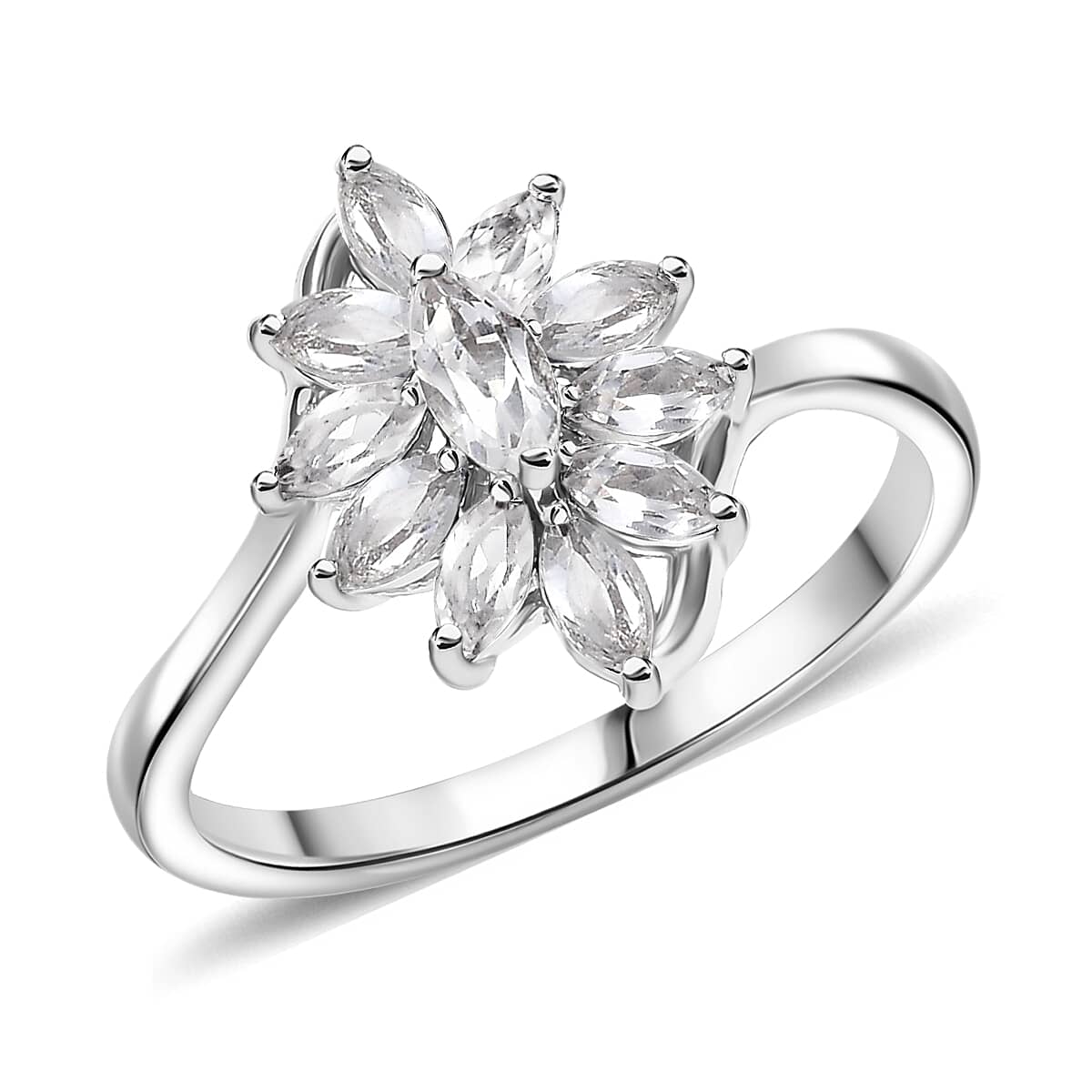D'Joy White Topaz Ring in Rhodium Over Sterling Silver (Size 5.0) 1.15 ctw