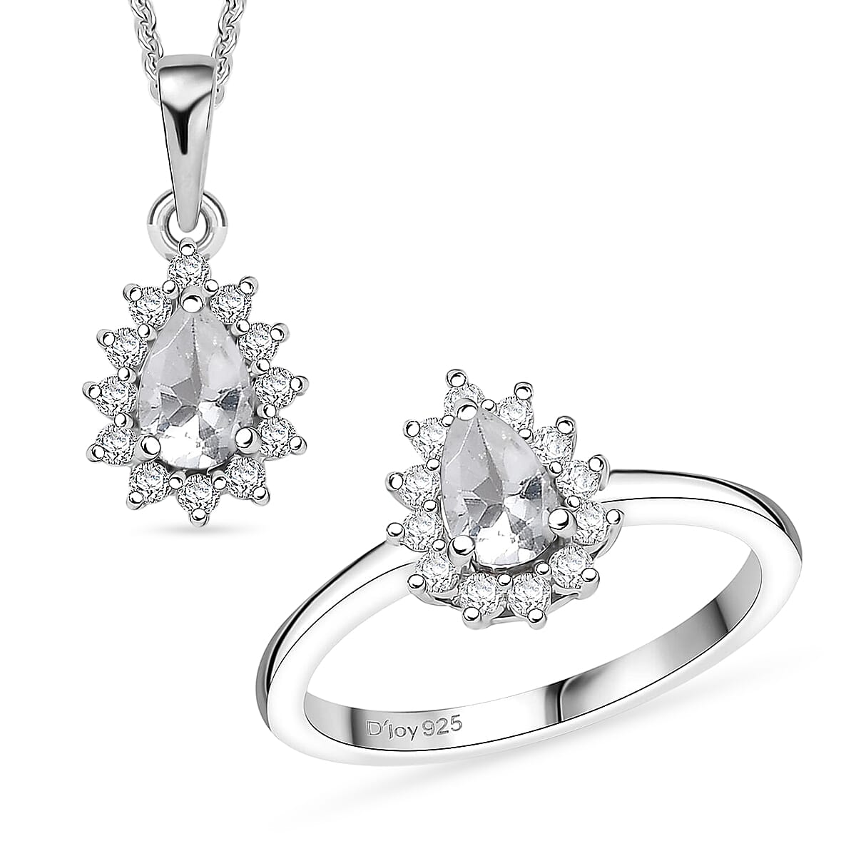 D'Joy White Topaz, White Zircon 1.60 ctw Ring (Size 8.0) and Pendant Necklace 20 Inches in Rhodium Over Sterling Silver