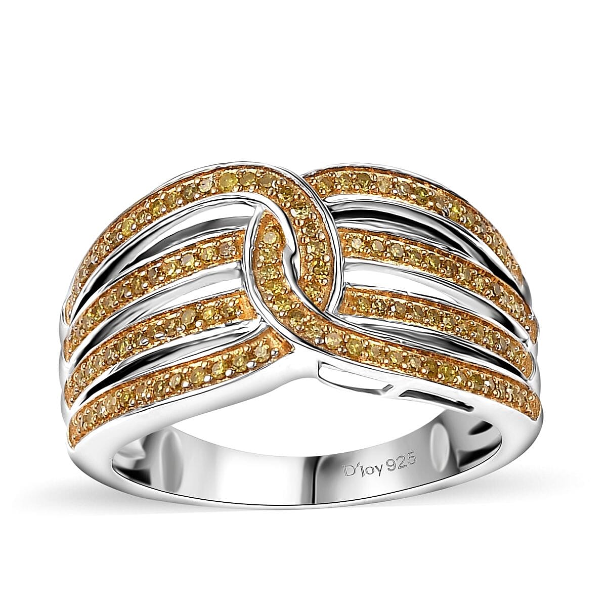 D'Joy Yellow Diamond 0.33 ctw Interlocking Ring in Rhodium Over Sterling Silver (Size 5.0)