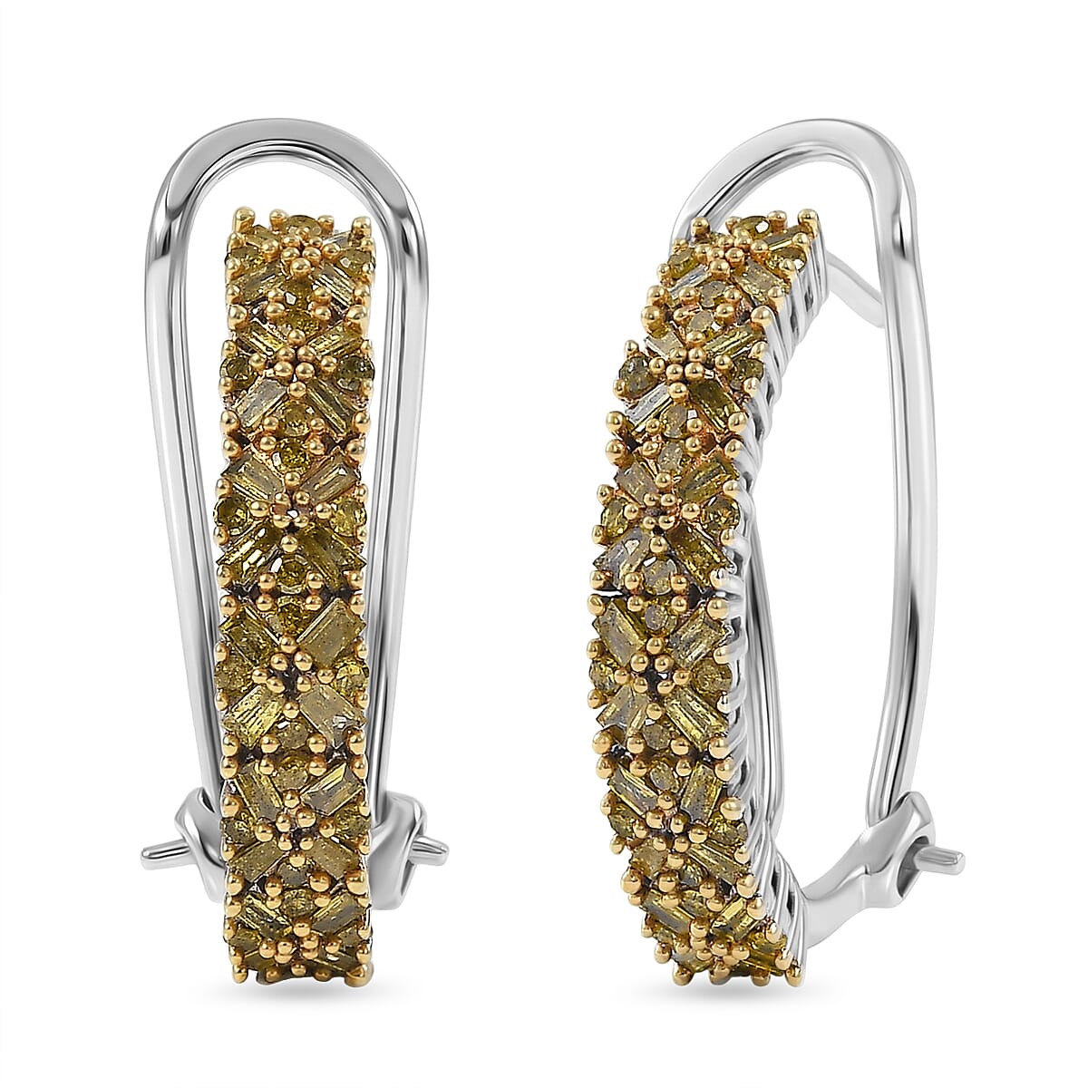 D'Joy Yellow Diamond 1.00 ctw Royal Crossfire Earrings in Rhodium Over Sterling Silver