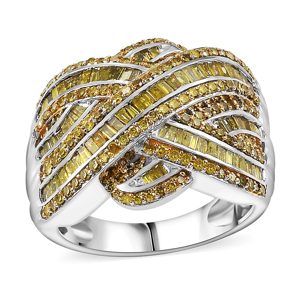 D'Joy Yellow Diamond 1.50 ctw Criss Cross Ring in Rhodium Over Sterling Silver (Size 10.0)