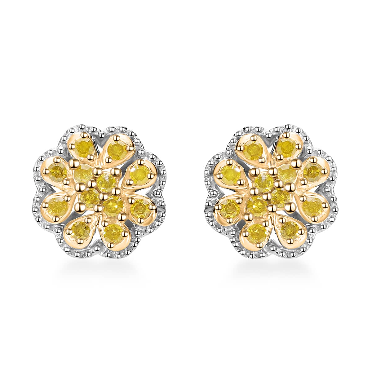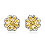 D'Joy Yellow Diamond Floral Earrings in Rhodium Over Sterling Silver 0.25 ctw