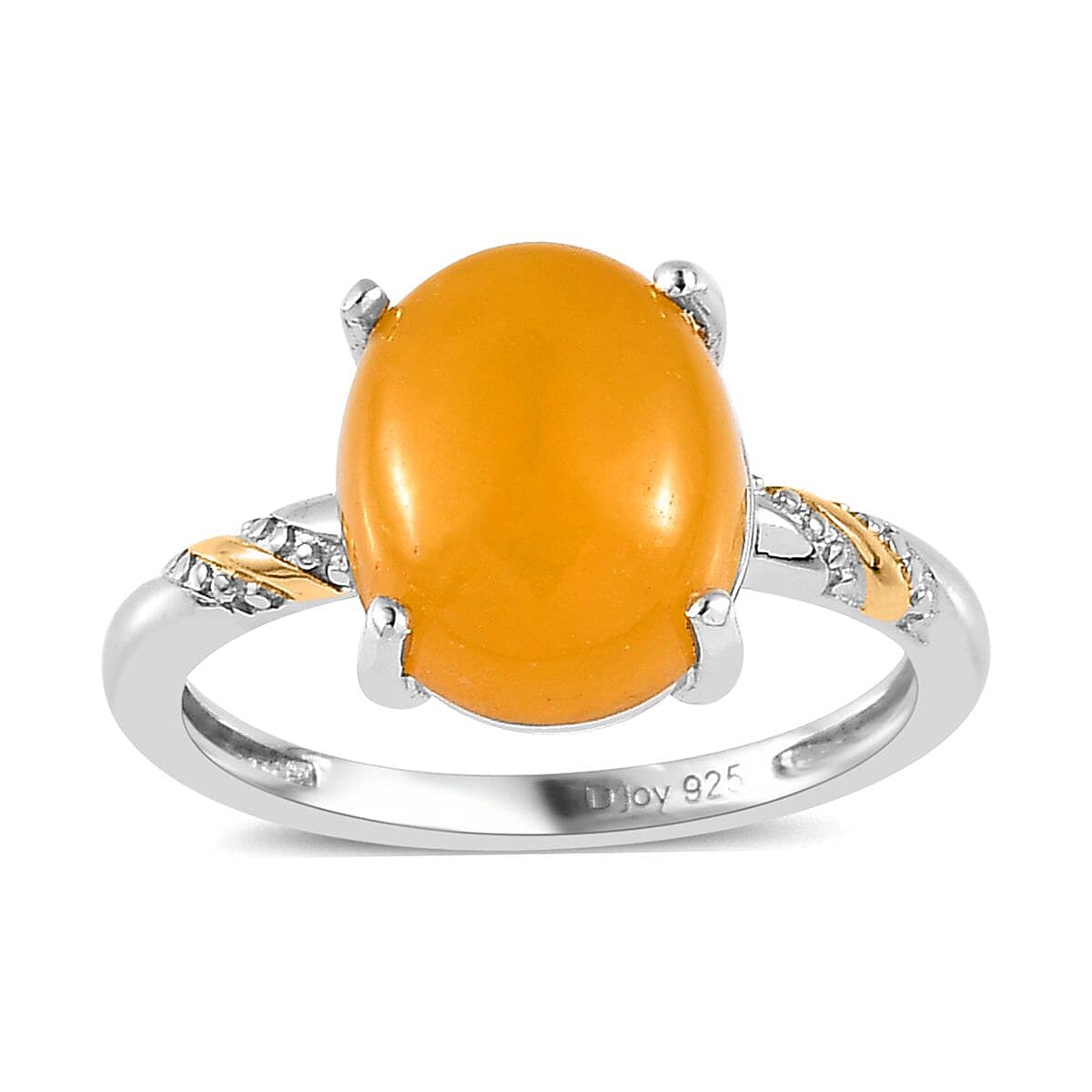D'Joy Yellow Jade (D) 4.90 ctw Solitaire Ring in 14K YG and Platinum Over Sterling Silver (Size 10.0)