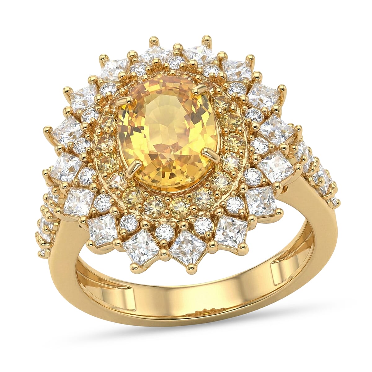 D'Joy Yellow Sapphire and Moissanite 3.80 ctw Dahlia Bloom Ring in 18K Vermeil Yellow Gold Over Sterling Silver (Size 7.0)