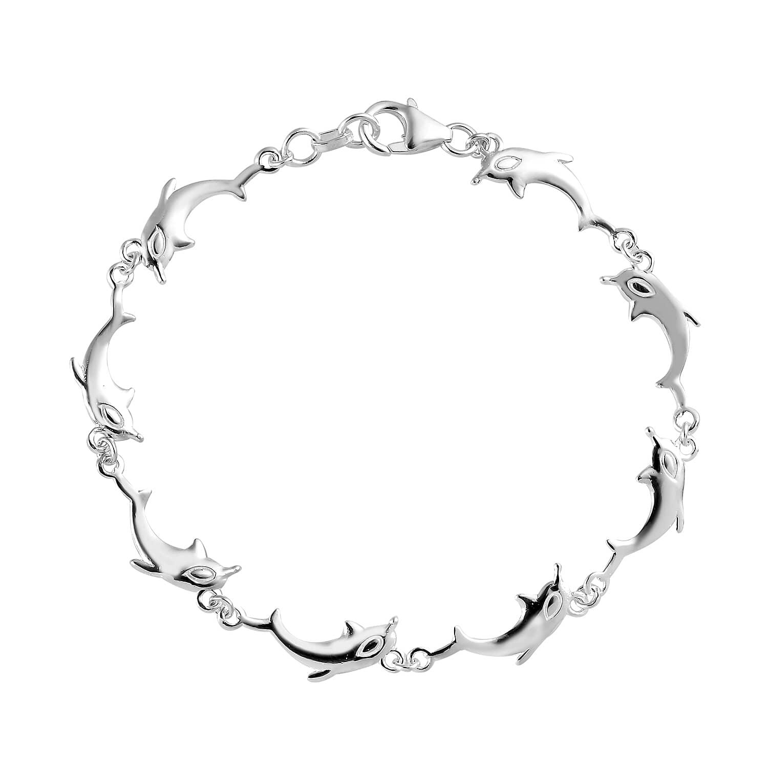 Dolphin Link Charm Bracelet For Women in Sterling Silver, Ocean Jewelry Beach Gifts Size 7.25 Inches (7.25 In)