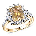 Doorbuster Certified & Appraised AAA Golden Tanzanite and Luxuriant Diamond G-H SI 3.10 ctw Sunburst Halo Ring in 10K Yellow Gold (Size 7.0)