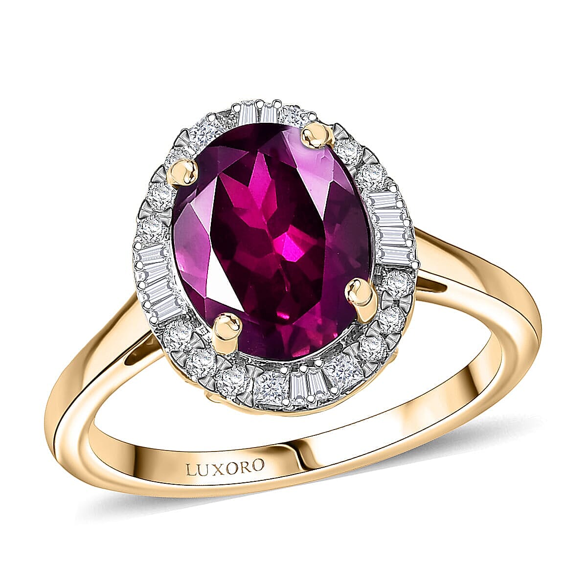 Doorbuster Certified & Appraised Luxoro AAA Radiant Ember Garnet and G-H I2 Diamond 3.30 ctw Halo Ring in 10K Yellow Gold (Size 11.0)