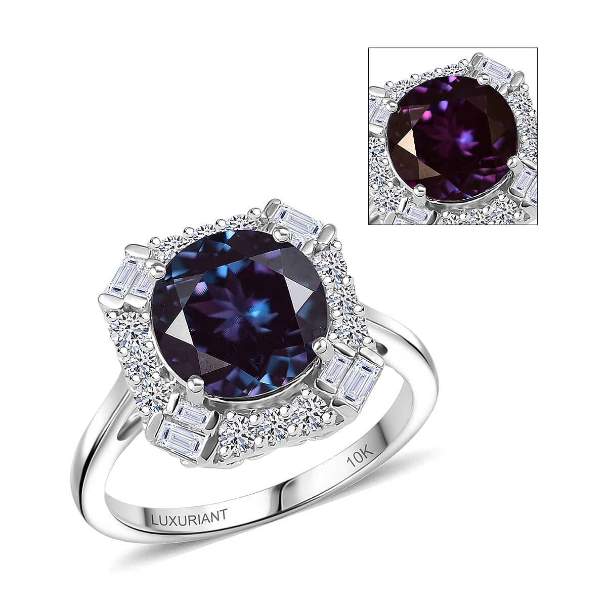 Captivate attention with this Luxuriant lab-grown alexandrite ring in 10k white gold. Its color-changing gemstone creates a mystique that sets you distinctly apart. You'll cherish how this white gold ring becomes the centerpiece of your sophisticated style.