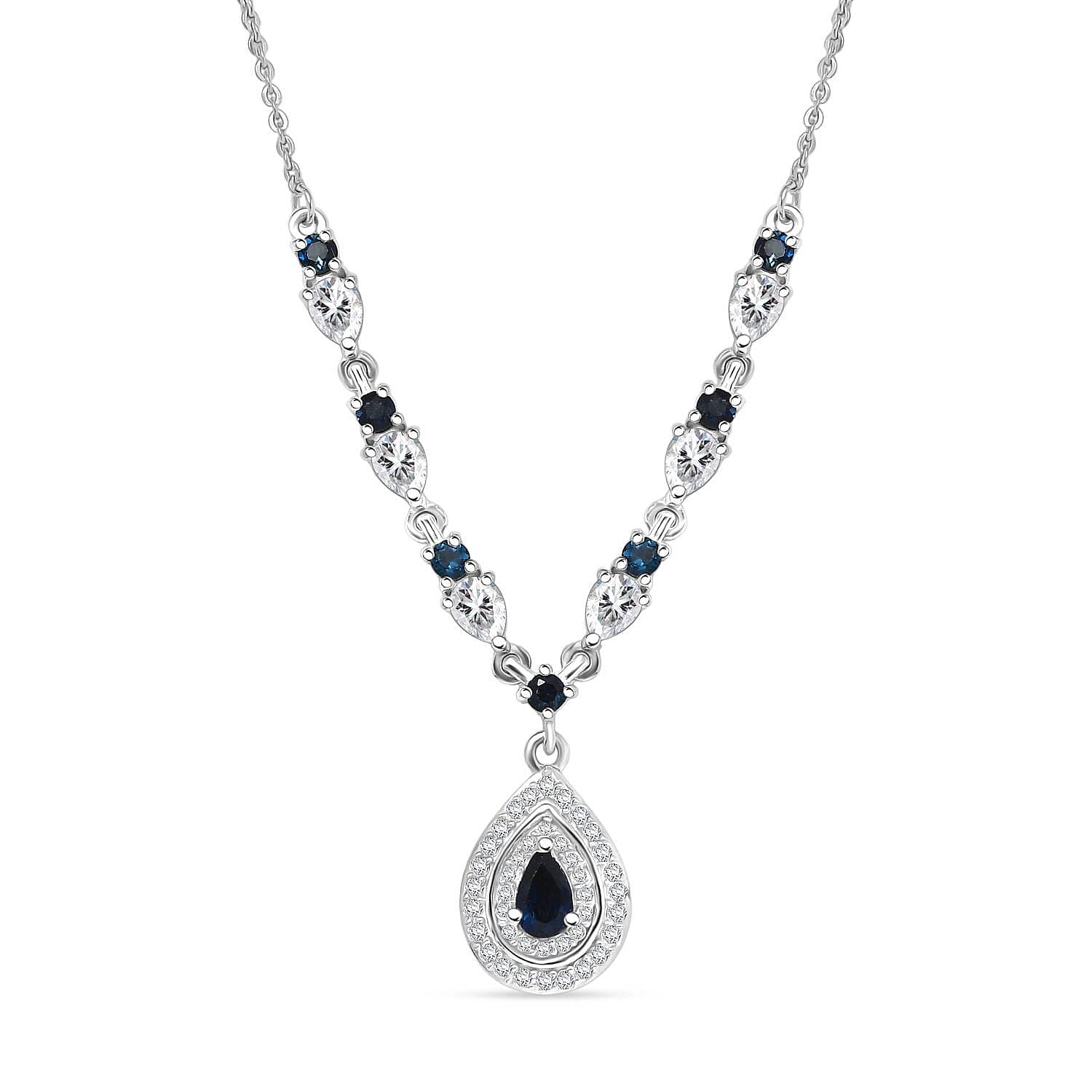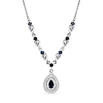Doorbuster D'Joy AAA Monte Belo Indicolite and Moissanite 1.60 ctw Art Deco Necklace in Rhodium Over Sterling Silver 18 Inches