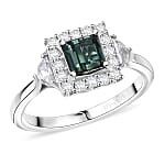 Doorbuster D'Joy AAA Pirineu Lagoon Tourmaline and Moissanite 1.50 ctw Ring in Rhodium Over Sterling Silver (Size 10.0)