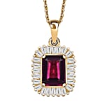 Doorbuster D'Joy AAA Radiant Ember Garnet and Moissanite 2.50 ctw Pendant Necklace in 18K Vermeil Yellow Gold Over Sterling Silver 20 Inches