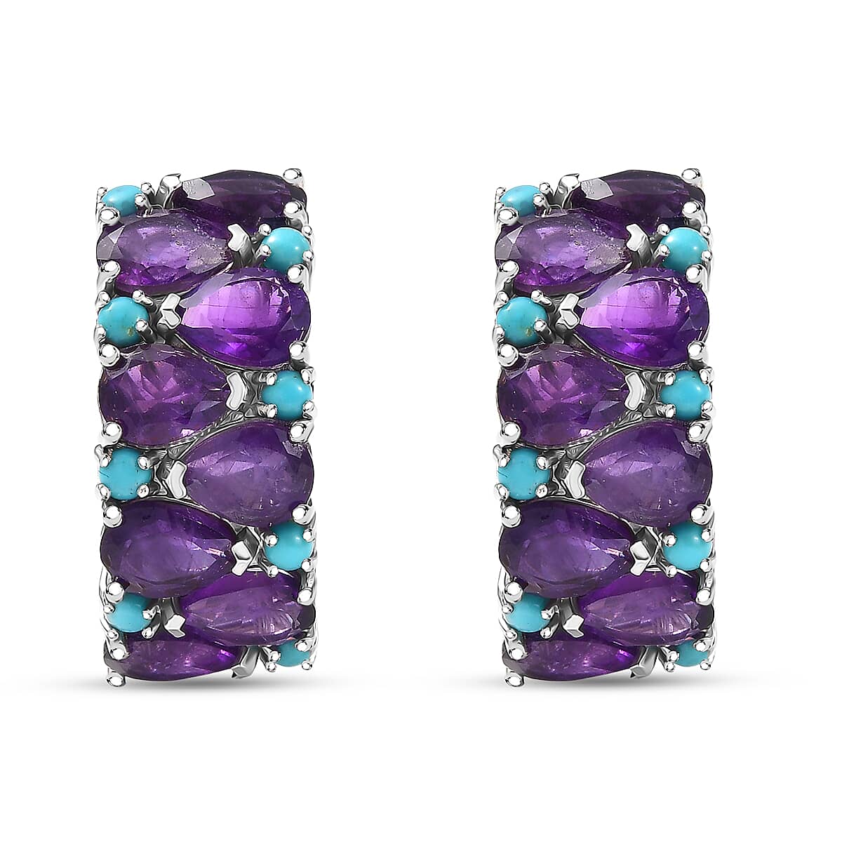 Doorbuster D'Joy African Amethyst and Lagoon Turquoise 12.10 ctw Tears of The Moon Earrings in Rhodium Over Sterling Silver