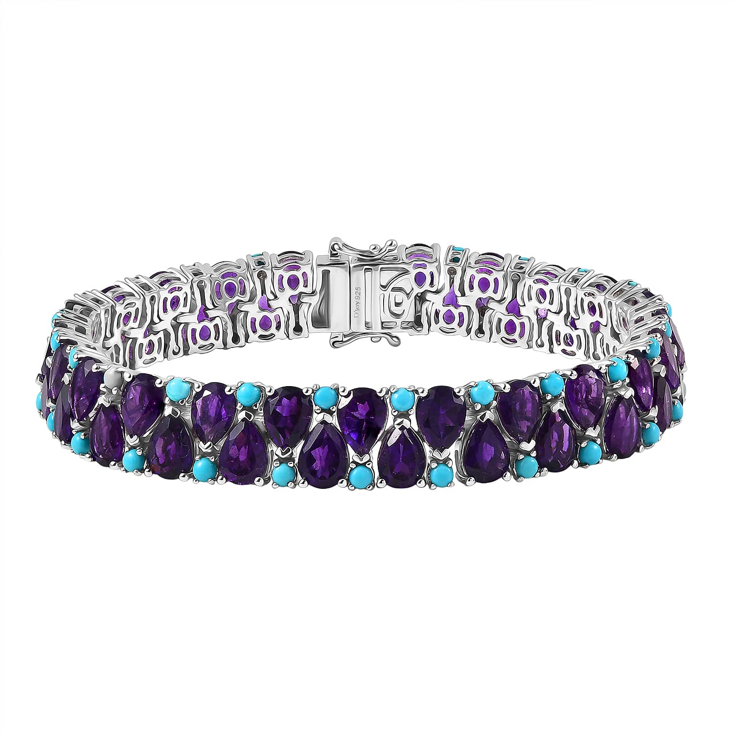 Doorbuster D'Joy African Amethyst and Lagoon Turquoise 33.90 ctw Tear of The Moon Bracelet in Rhodium Over Sterling Silver (7.25 In)