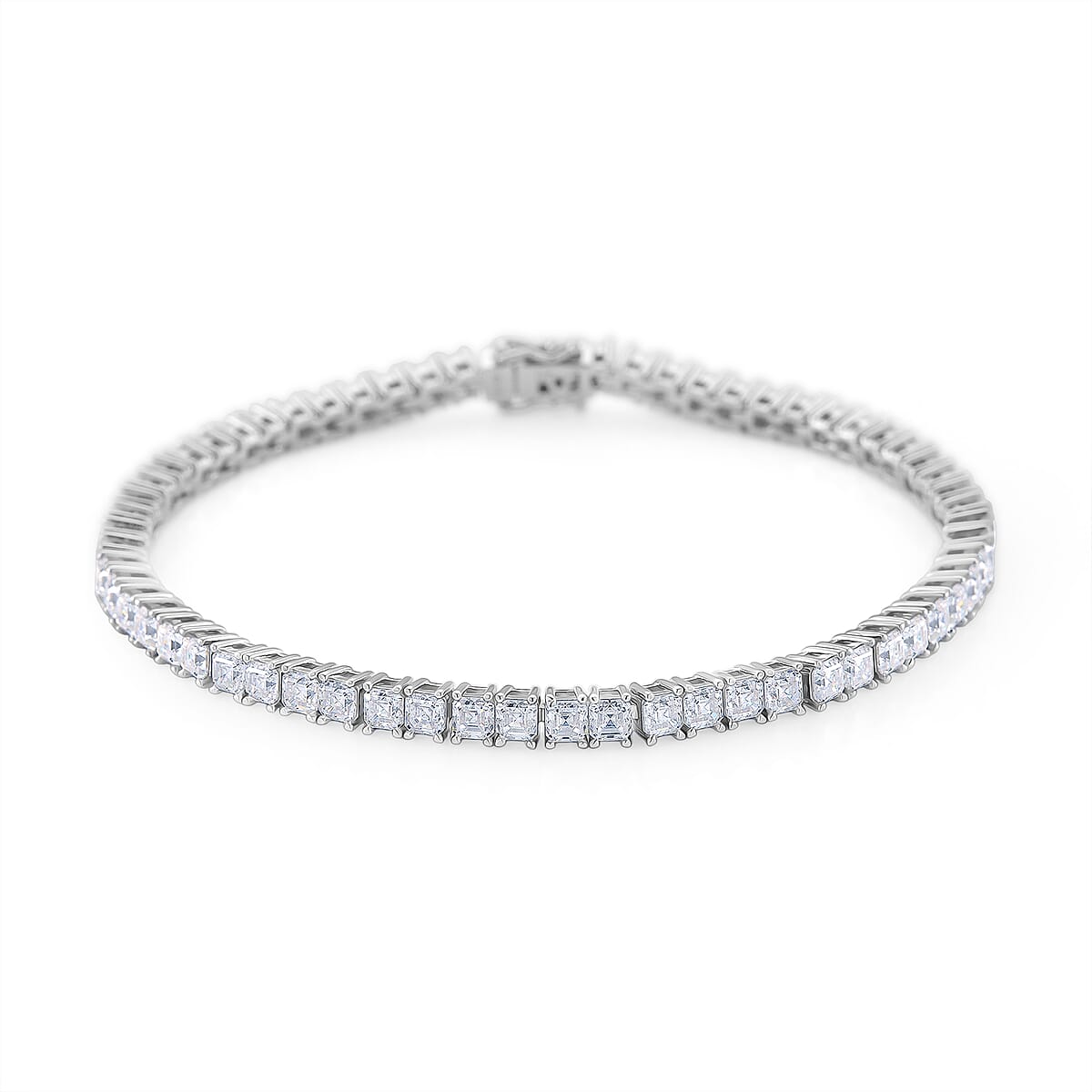 Doorbuster D'Joy Asscher Cut Moissanite 9.20 ctw Eternal Shine Line Bracelet in Rhodium Over Sterling Silver (8.00 In)