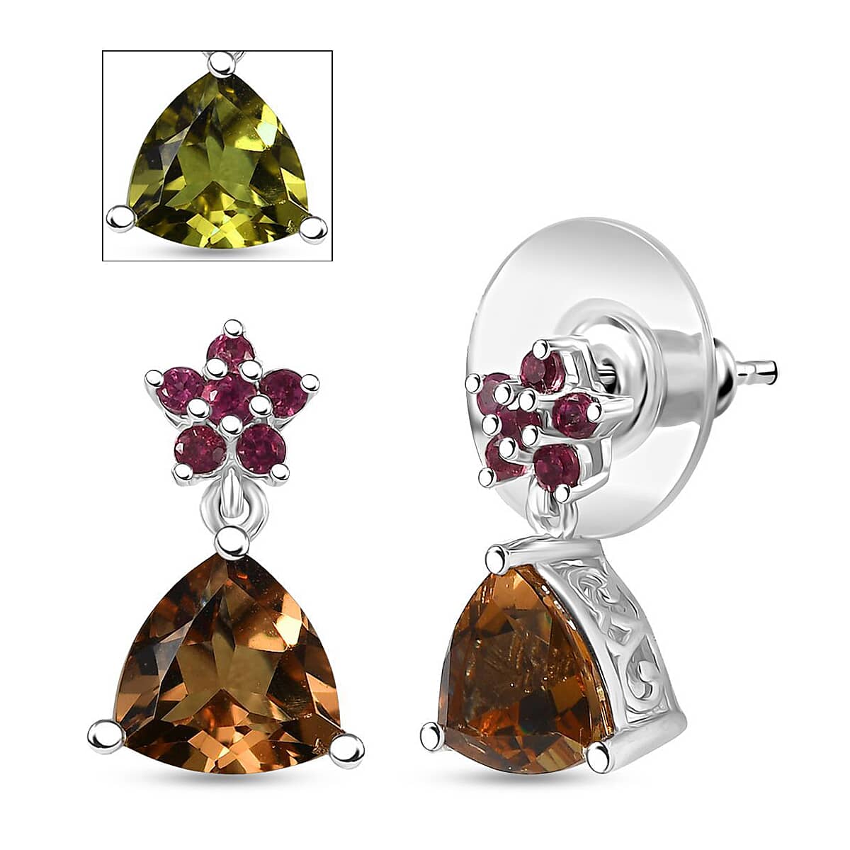 Doorbuster D'Joy Autumn Alexite and Orissa Rhodolite Garnet 3.85 ctw Floral Earrings in Platinum Over Sterling Silver