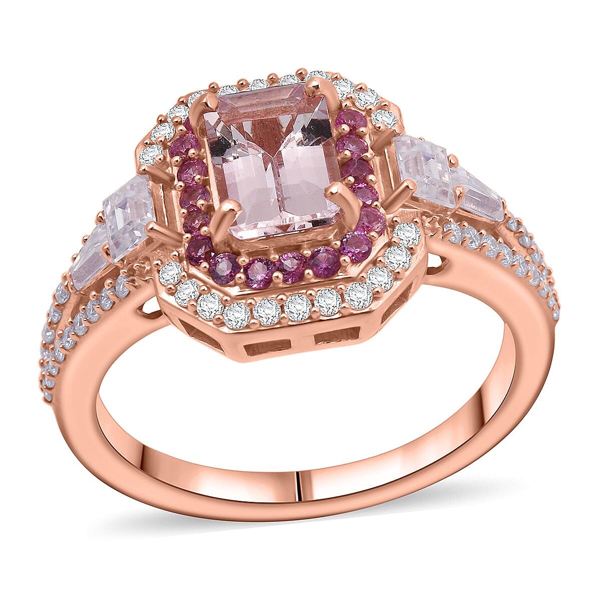 Doorbuster D'Joy Marropino Morganite and Multi Gemstone 1.70 ctw Royal Heirloom Ring in 18K Vermeil Rose Gold Over Sterling Silver (Size 5.0)