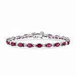 Doorbuster D’Joy Niassa Ruby (FF) and White Zircon 14.65 ctw Four Leaf Clover Bracelet in Rhodium Over Sterling Silver (7.25 In)