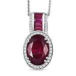 Doorbuster D'Joy Premium African Ruby (FF) and Moissanite 10.35 ctw Royal Legacy Pendant Necklace in Rhodium Over Sterling Silver 20 Inches