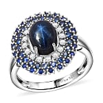 Doorbuster D'Joy Premium Blue Star Sapphire (DF) and Multi Gemstone 4.10 ctw Celestial Crown Ring in Rhodium Over Sterling Silver (Size 10.0)