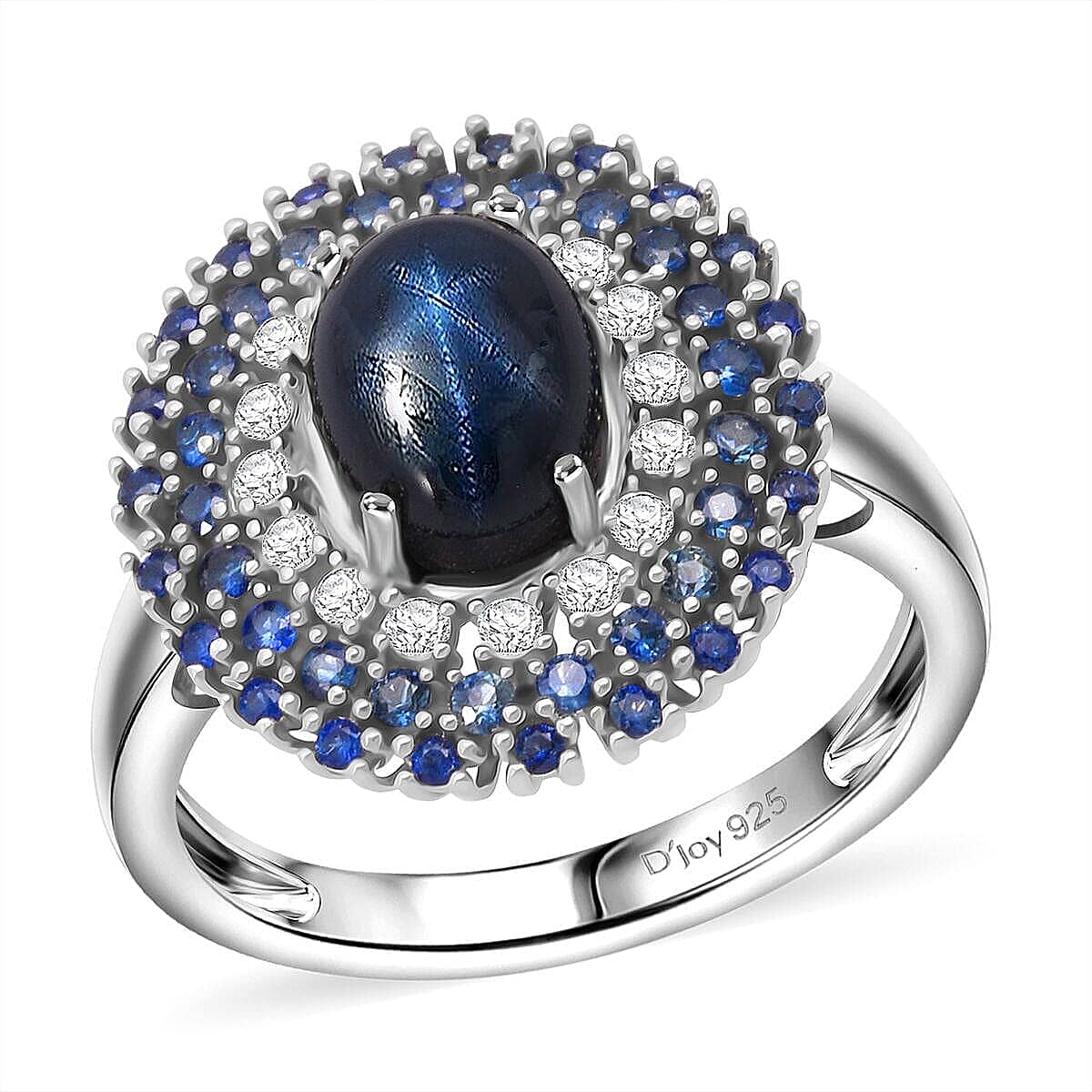Command attention with the D'Joy blue star sapphire ring in sterling silver. Its central sapphire creates your signature look with a mesmerizing stellar pattern. This multi-gemstone ring elevates your confidence at every special gathering. Details