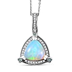 Doorbuster D'Joy Premium Ethiopian Welo Opal, Paraiba Tourmaline and Diamond 2.60 ctw Celestial Trinity Halo Pendant Necklace in Rhodium Over Sterling Silver 20 Inches