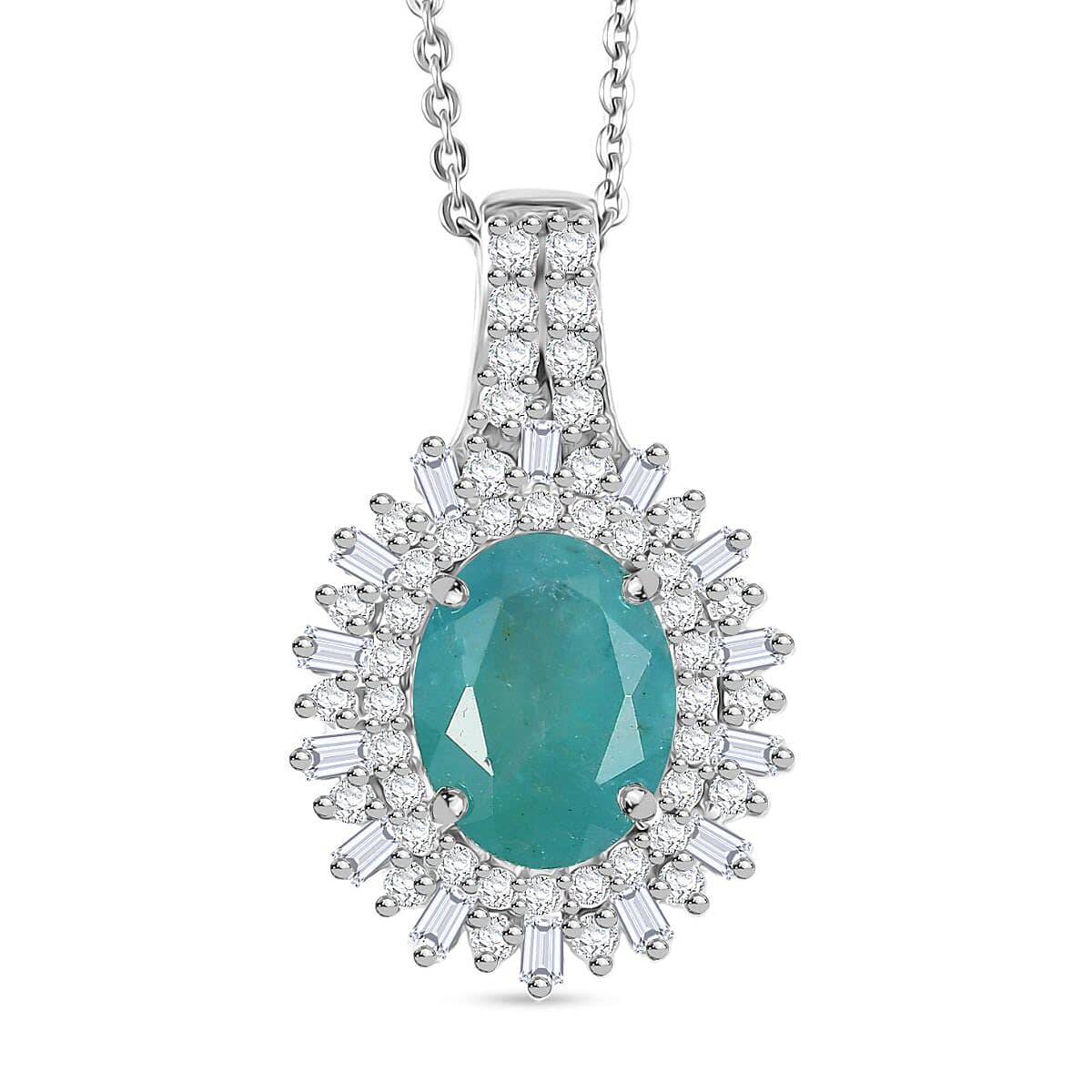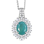 Doorbuster D'Joy Premium Grandidierite and Moissanite 2.40 ctw Sunburst Halo Pendant Necklace in Rhodium Over Sterling Silver 20 Inches