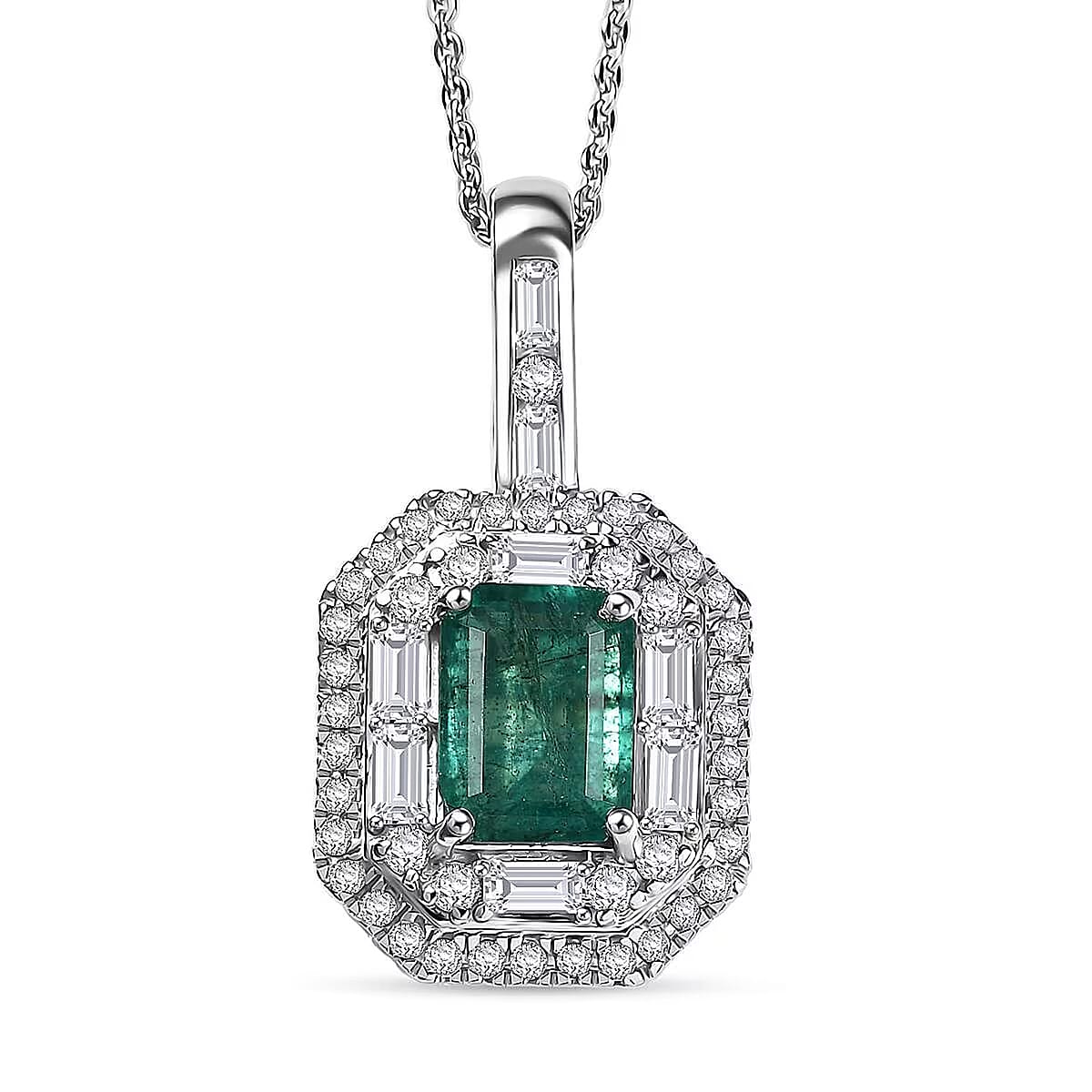 Doorbuster D'Joy Premium Kagem Zambian Emerald and Moissanite 2.40 ctw Art Deco Pendant Necklace in Rhodium Over Sterling Silver 20 Inches