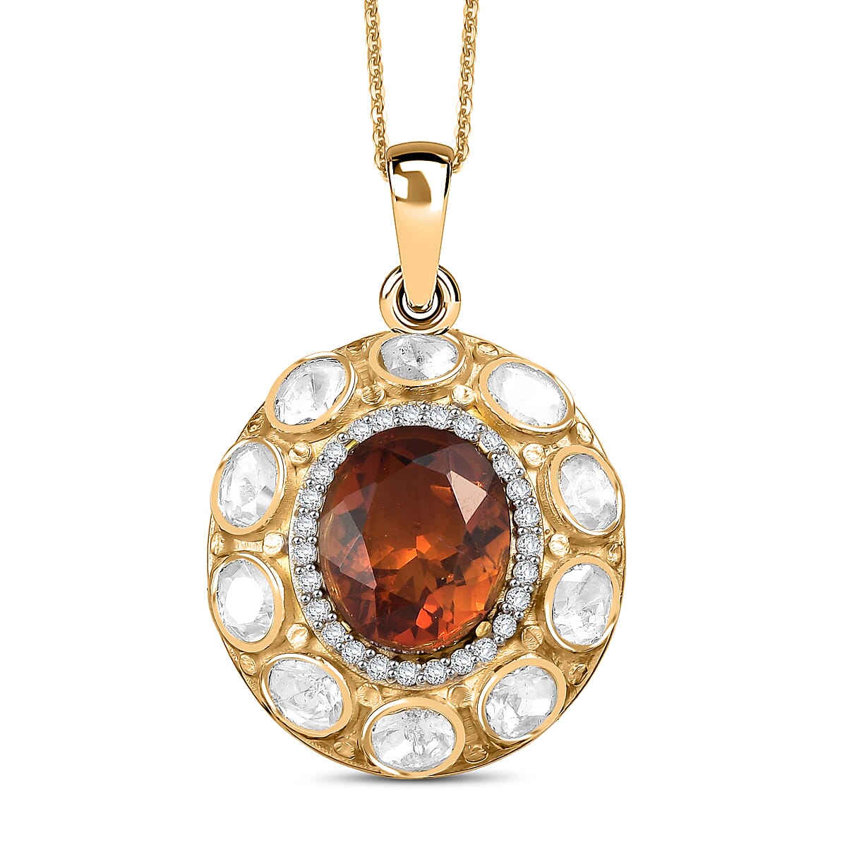 Doorbuster D'Joy Premium Red Citrine and Moissanite 6.65 ctw Royal Fire Glow Pendant Necklace in 18K Vermeil Yellow Gold Over Sterling Silver 20 Inches