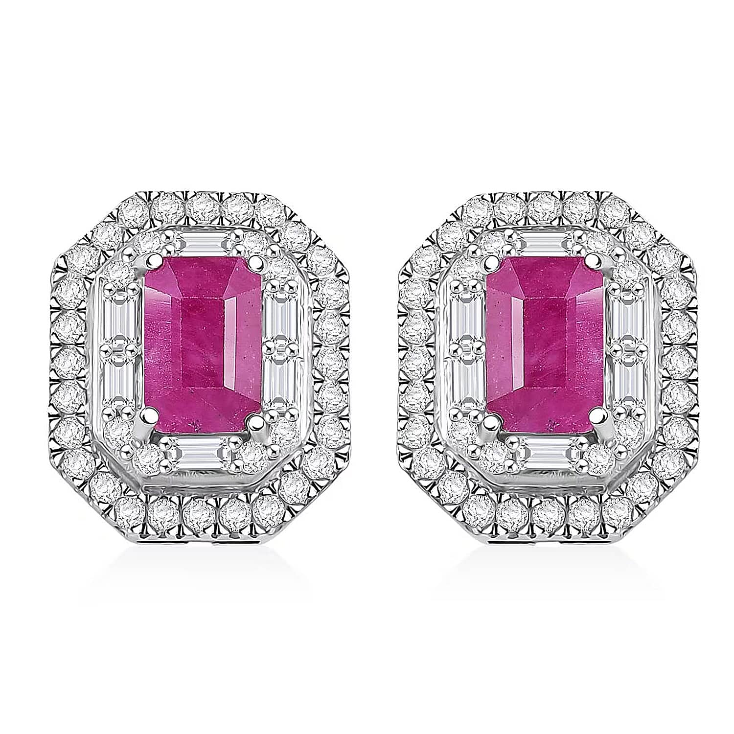 Doorbuster D'Joy Premium Royal Ruby and Moissanite 2.50 ctw Art Deco Earrings in Rhodium Over Sterling Silver