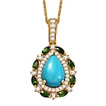 Doorbuster D’Joy Sleeping Beauty Turquoise and Multi Gemstone 4.00 ctw Sunburst Halo Pendant Necklace in 18K Vermeil Yellow Gold Over Sterling Silver 20 Inches