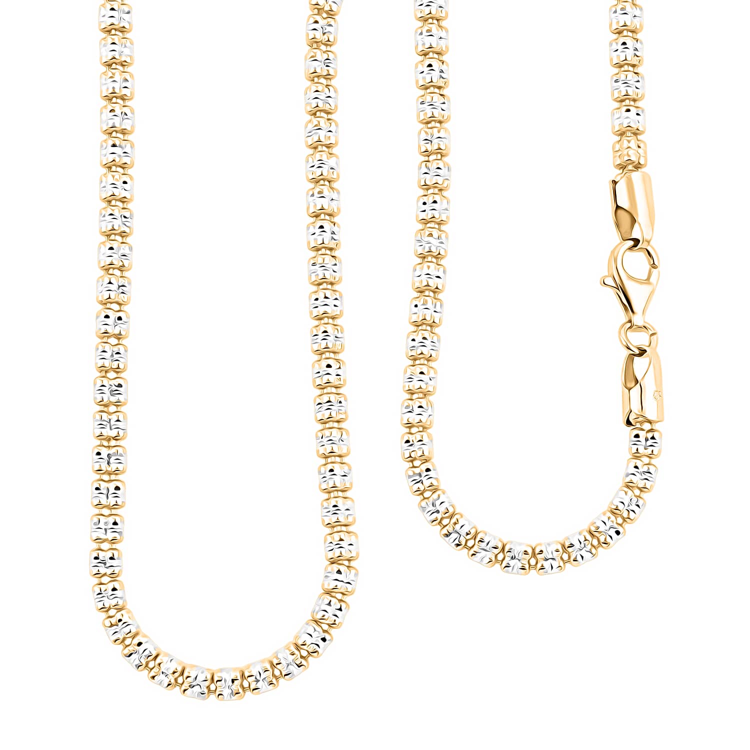 Doorbuster Italian 14K YG and Rhodium Over Sterling Silver Diamond Cut ICE Round Chain 3 Row Necklace 22 Inches 22.45 Grams