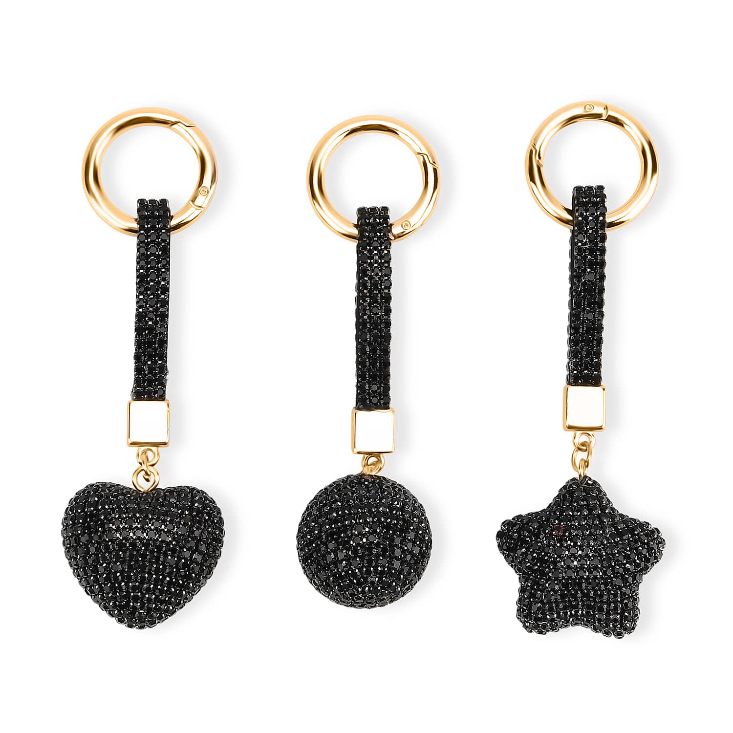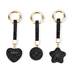 Doorbuster Livmore Black Glass and Crystal 3-piece Set Heart, Star and Ball Keychain in Goldtone
