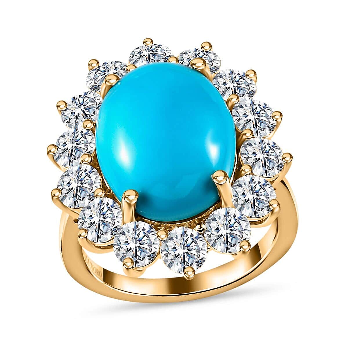 Doorbuster Luxoro 10K Yellow Gold AAA Sleeping Beauty Turquoise, Moissanite Halo Ring 8.90 ctw