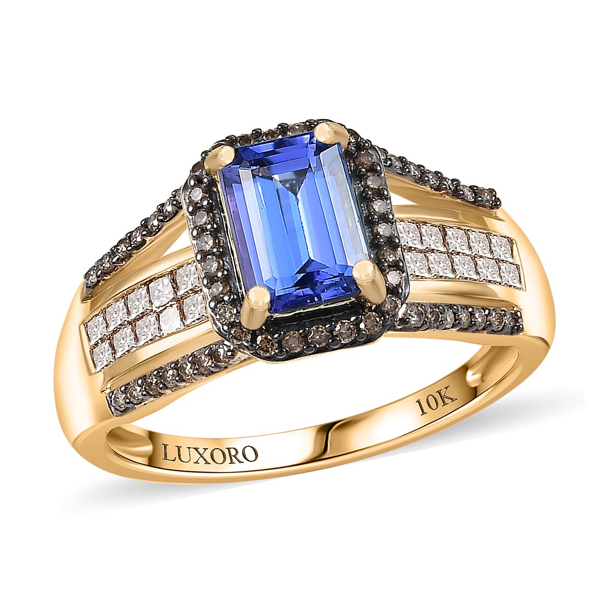 Doorbuster Luxoro AAA Tanzanite and Natural Champagne Diamond I2 1.80 ctw Bridge Ring in 10K Yellow Gold (Size 7.0)
