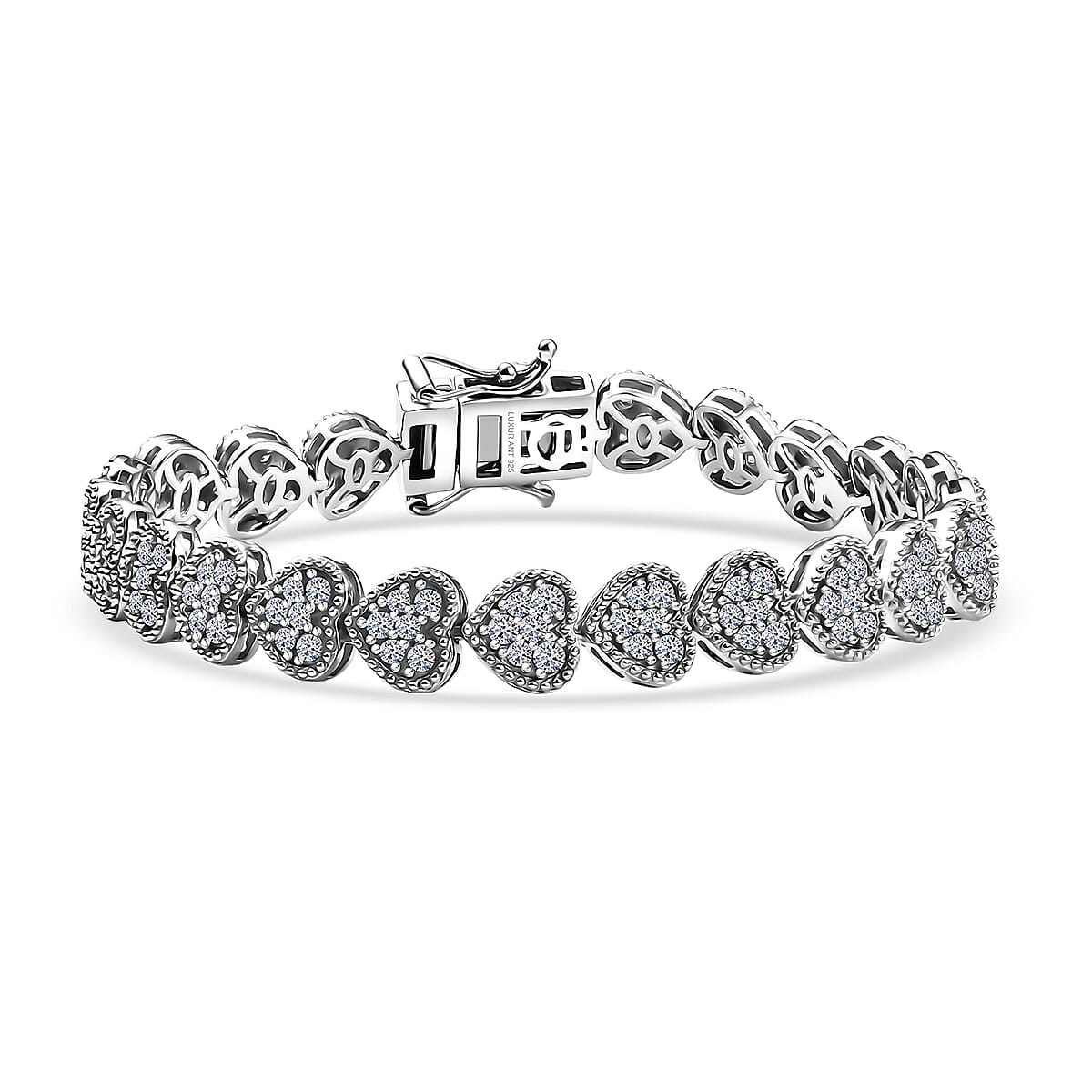 Doorbuster Luxuriant Lab Grown Diamond G-H SI 4.15 ctw Heartstrings Bracelet in Rhodium Over Sterling Silver (8.00 In)