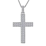 Captivate admirers with this Luxuriant lab-grown diamond pendant necklace in sterling silver. Its exquisite stones symbolize achievement and distinguished style. This cross jewelry commands attention with sophisticated, feminine elegance.