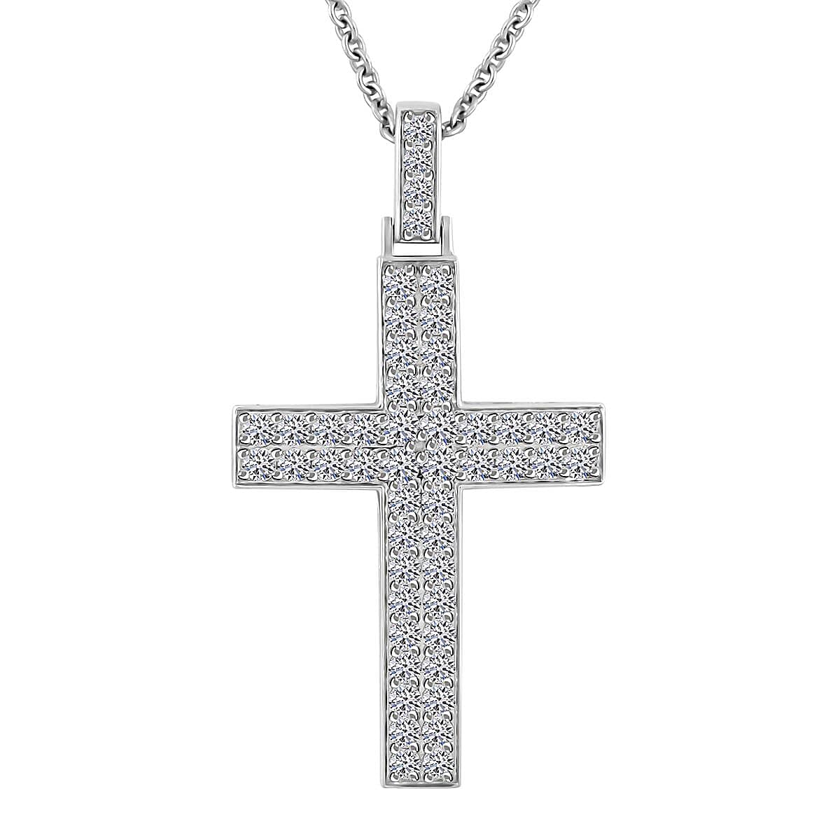 Doorbuster Luxuriant Lab Grown Diamond G SI 1.65 ctw Cross Pendant Necklace in Sterling Silver 16-18 Inches