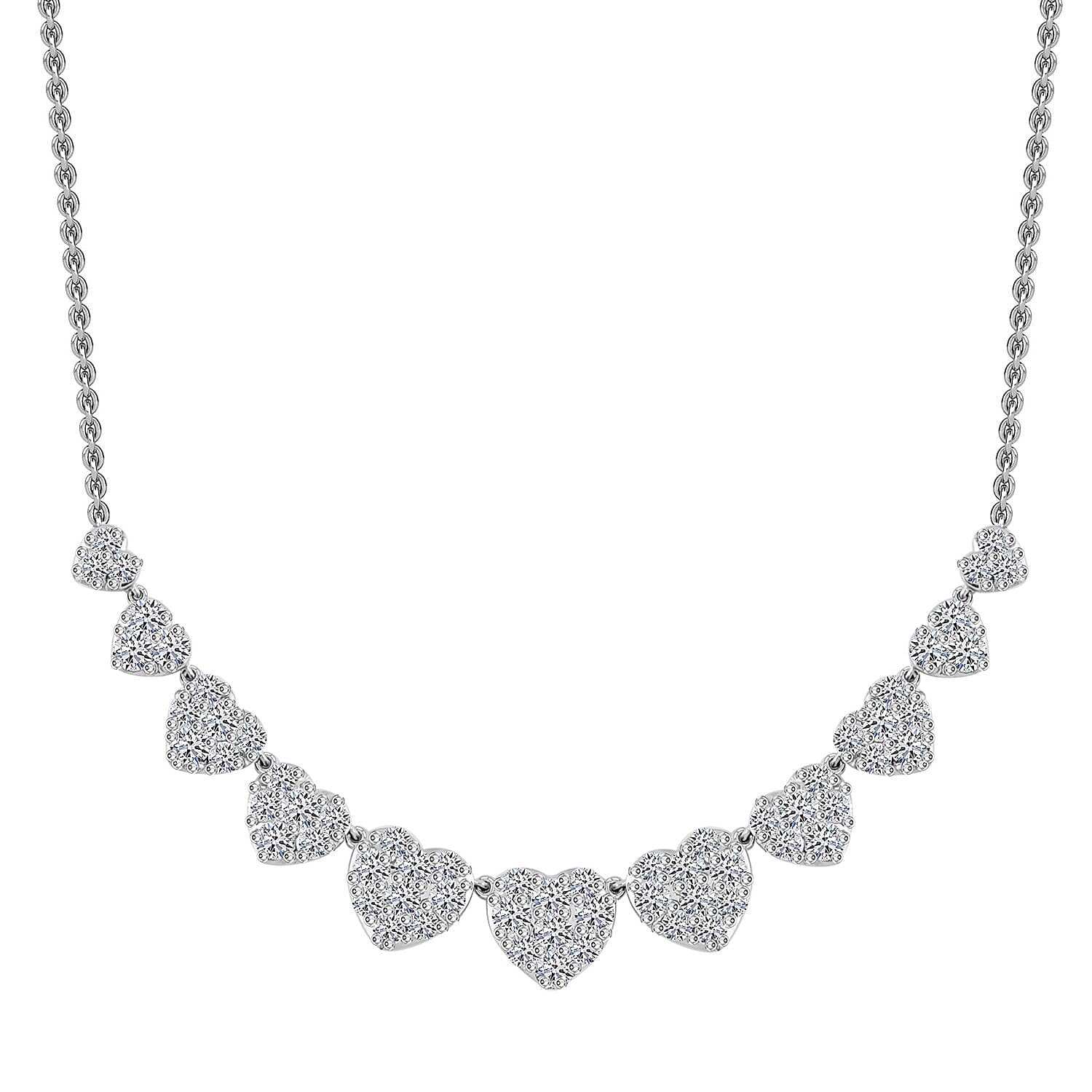 Doorbuster Luxuriant Lab Grown Diamond G SI 1.75 ctw Enchanted Hearts Necklace in Sterling Silver 16-18 Inches