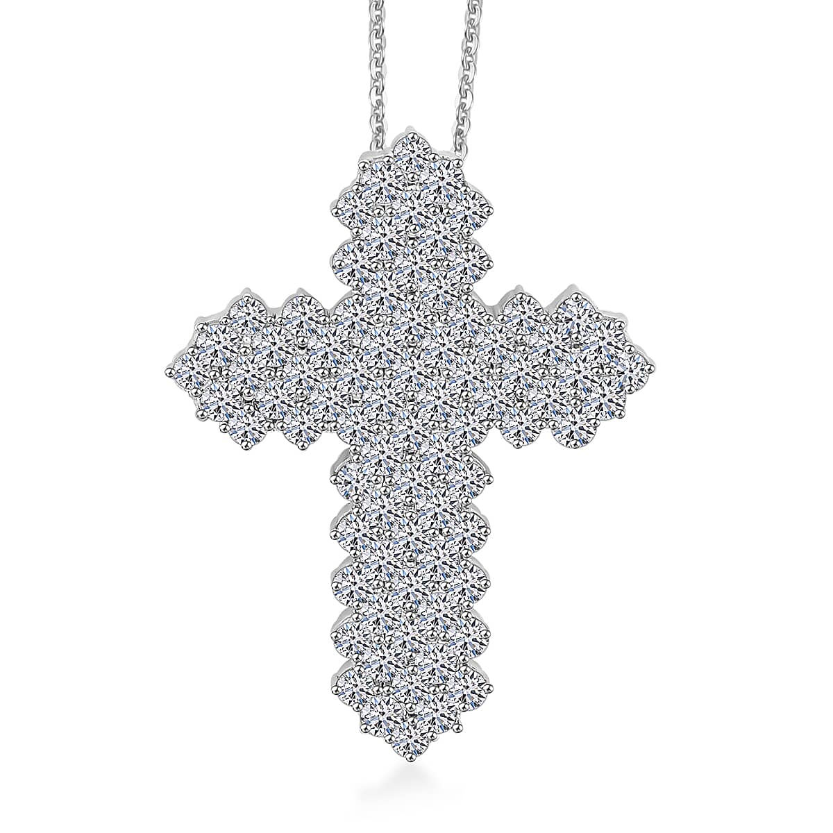 Doorbuster Luxuriant Lab Grown Diamond G SI 4.36 ctw Cross Pendant Necklace in Sterling Silver 16-18 Inches