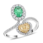 Doorbuster Modani Emerald, Natural Yellow and White Diamond F-G, VS 1.54 ctw Ring in 950 Platinum and 18K Yellow Gold 5.40 Grams