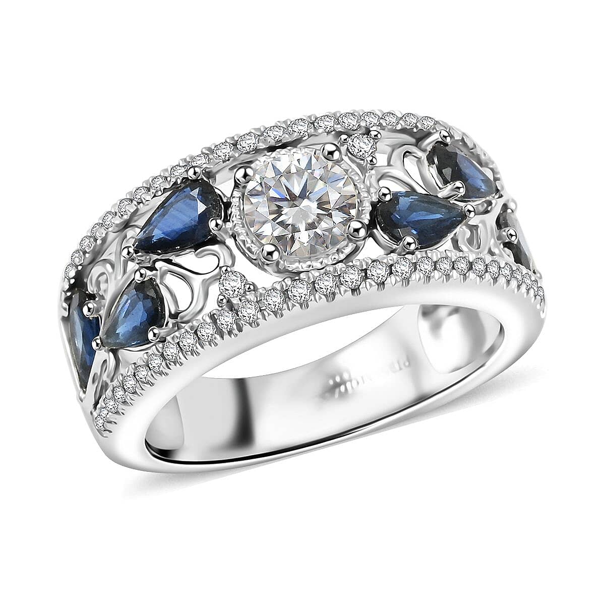 Doorbuster Modani White Diamond (VS,G) and Blue Sapphire 1.76 ctw Ring in 950 Platinum (Size 10.0) 9.55 Grams