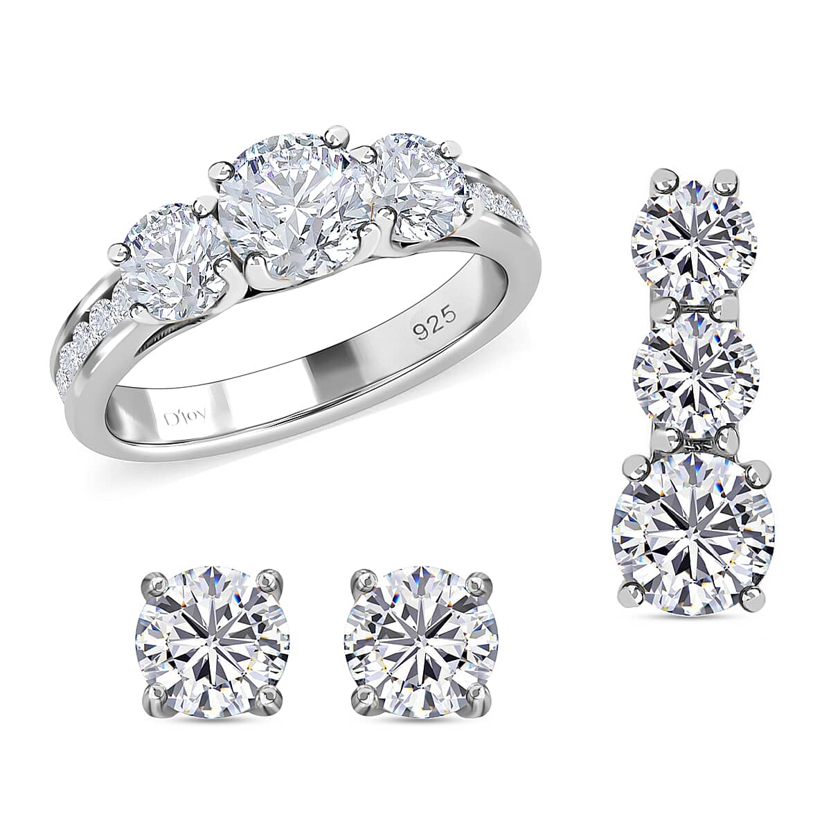 Elevate your ensemble with this moissanite trilogy ring, earrings and pendant in 925 sterling silver. This elegant jewelry set for women showcases brilliant stones for a sophisticated, timeless appeal. A versatile collection, it adds effortless charm to both everyday outfits and special occasions.