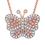 Doorbuster Natural Pink and White Diamond 0.35 ctw Butterfly Pendant Necklace in Vermeil Rose Gold Over Sterling Silver 20 Inches
