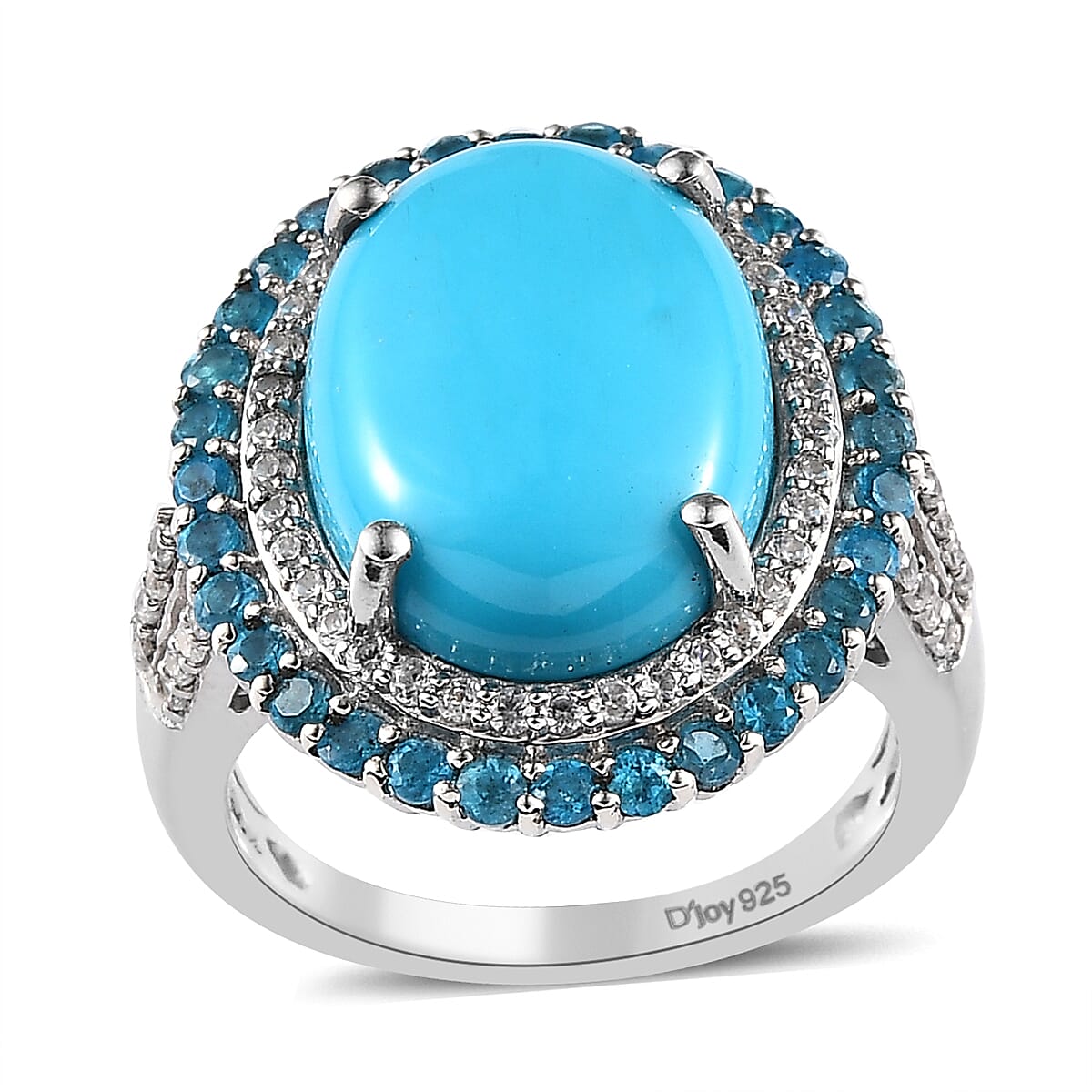 Doorbuster Premium Sleeping Beauty Turquoise and Multi Gemstone Double Halo Ring in Platinum Over Sterling Silver (Size 10.0) 8.65 ctw