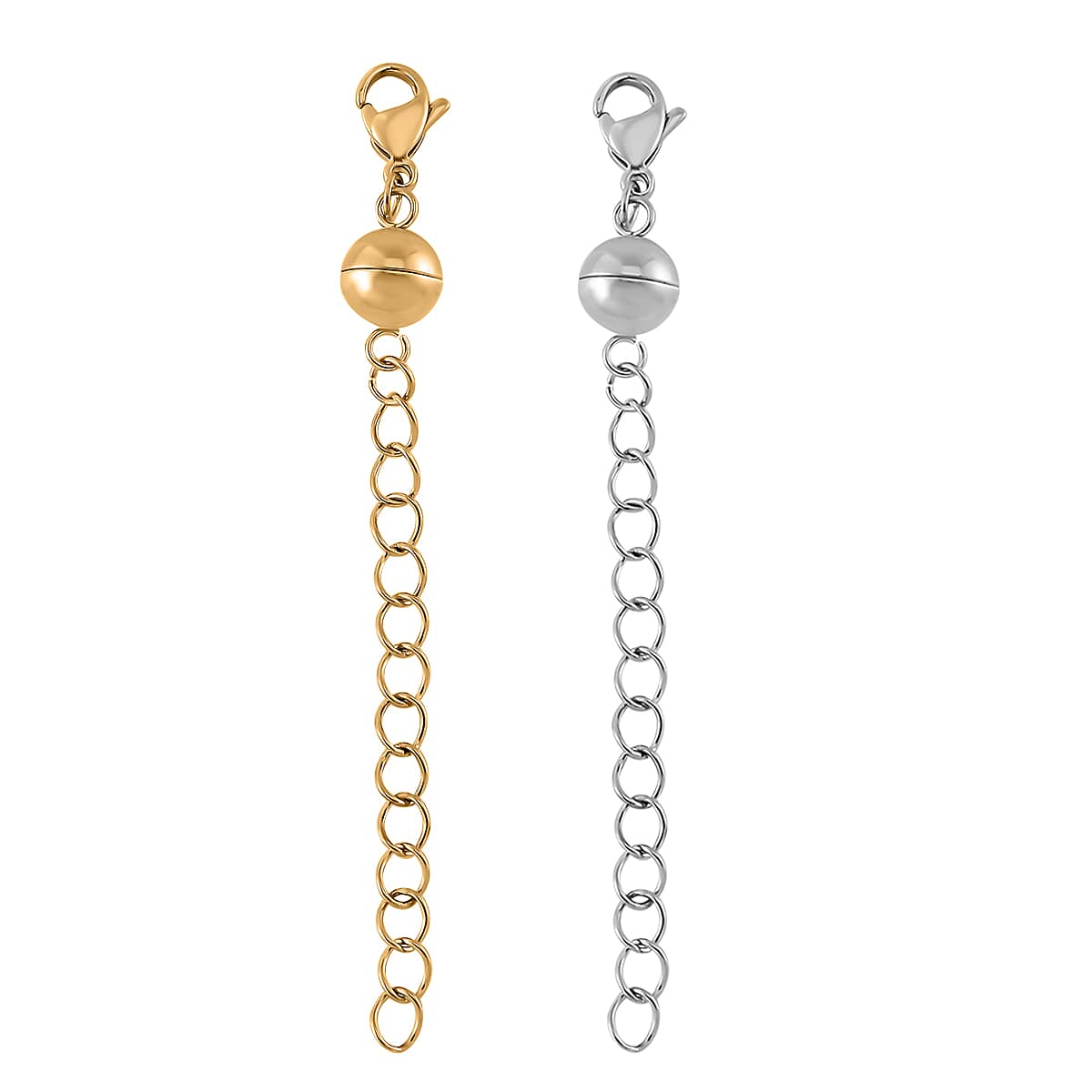 Doorbuster Set of 2 -11mm Lobster Lock with 8mm Magnetic Lock and 2 Inch Extender Chain in Rhodium Over and ION Plated YG Stainless Steel