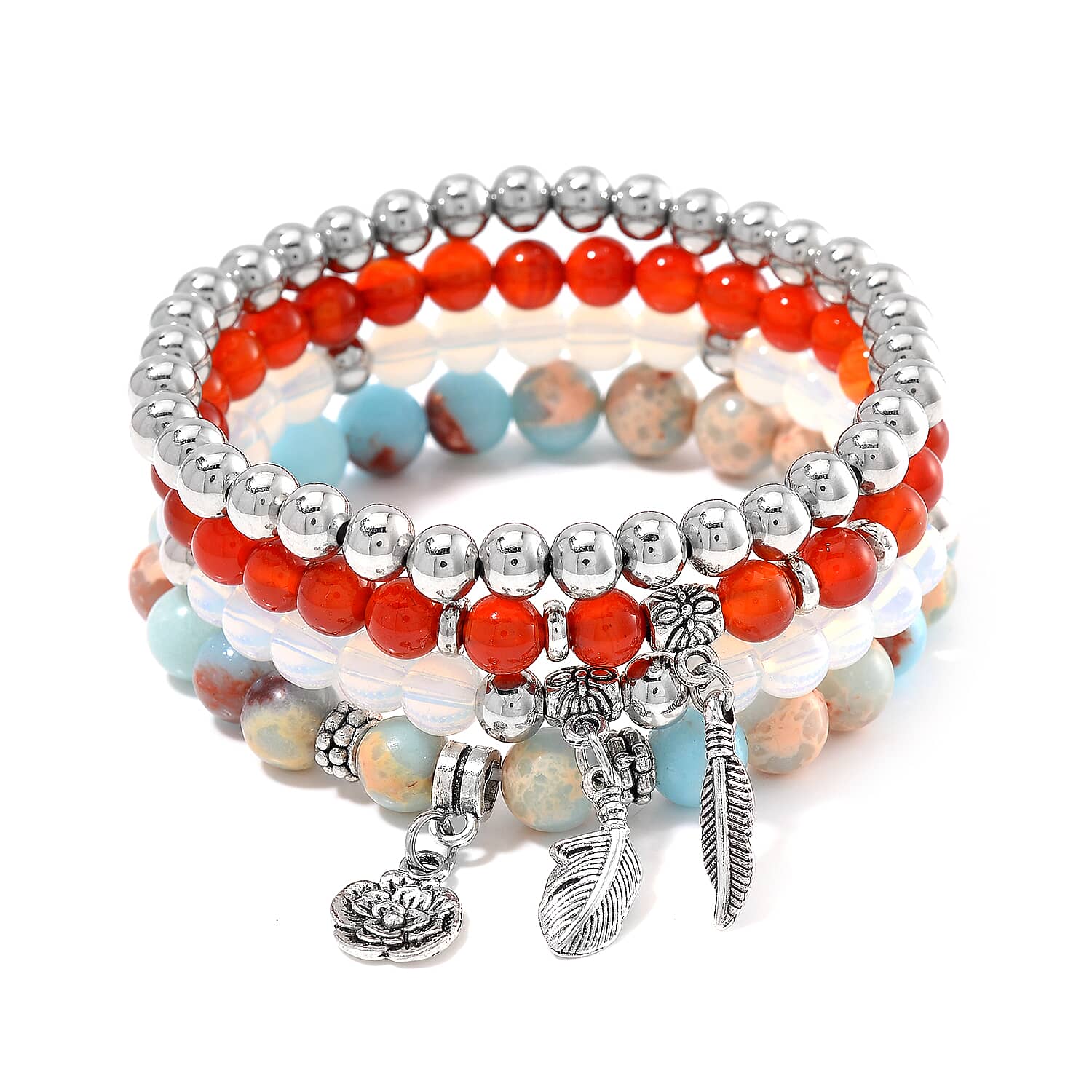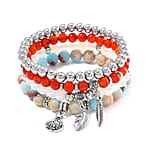 Doorbuster Set of 4 Multi Gemstone 165.00 ctw Bracelet with Flower and Feather Charm in Silvertone (6.5-7In)