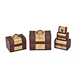 Doorbuster Set of 5 Golden Leaf Embossed MDF and Faux Leather Mixing Exquisite Jewelry Chest Box (8.7"x7.1"x6.3" - 3"x1.8"x2")