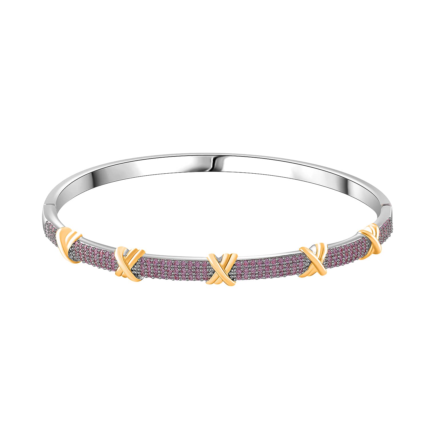 Doorbuster Simulated Pink Diamond 10.00 ctw XOXO Bangle Bracelet in Dualtone (7.50 In)